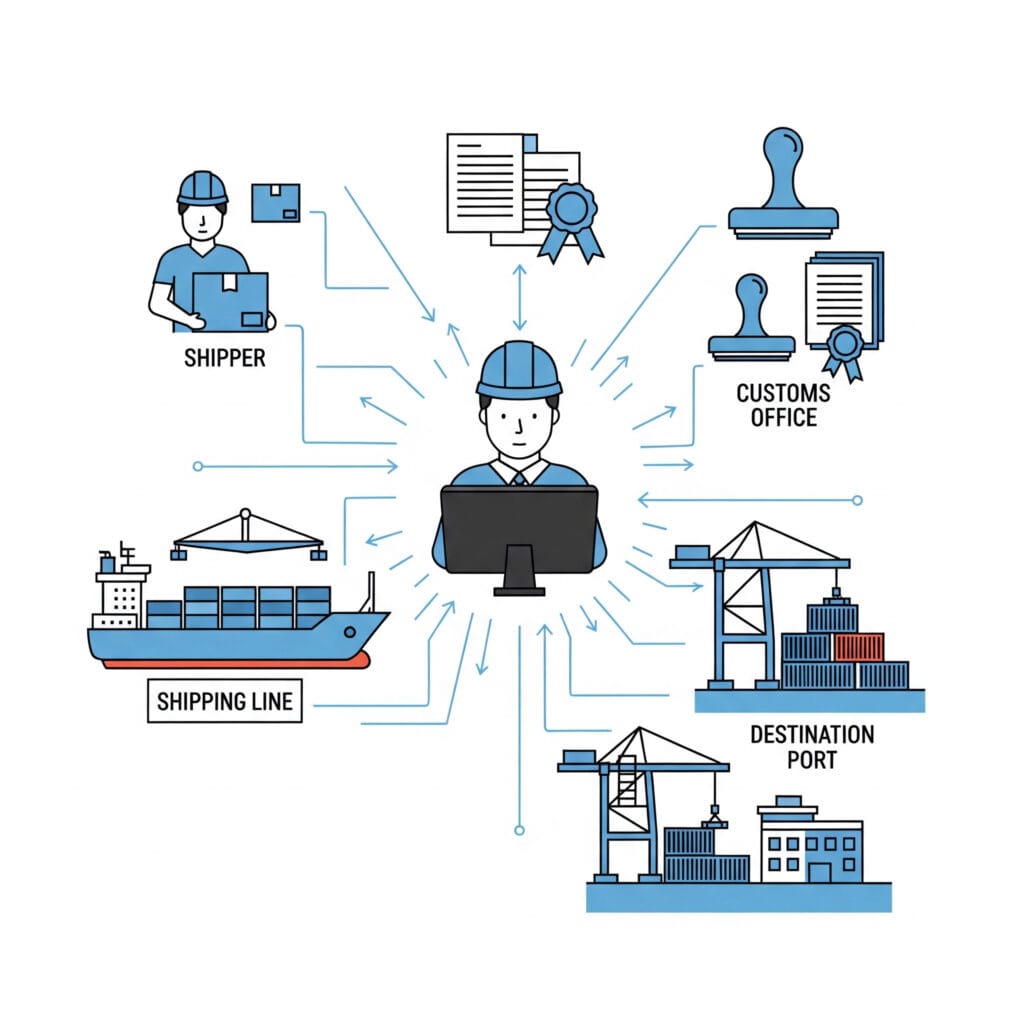 A shipping agent acts on behalf of the shipping line at a specific port. They handle local operations such as:
